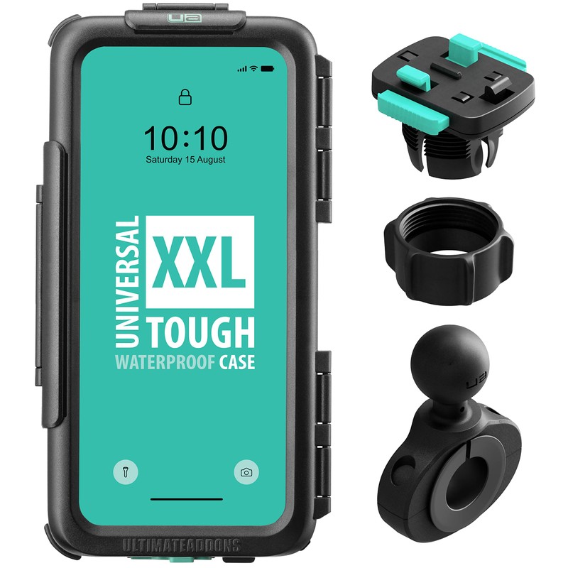 - Our universal smartphone motorcycle bag combined with the handlebar mount is the best way to use all the benefits of your smartphone on the go. Waterproof, shockproof and assembled in seconds