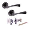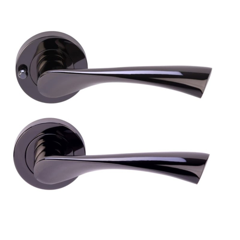 HANDLEZONE® Zena Privacy Lever On Round Rose Door Handles, with Privacy Latch, for Bathroom, Toilet, WC Doors, 1 Set - Black Nickel