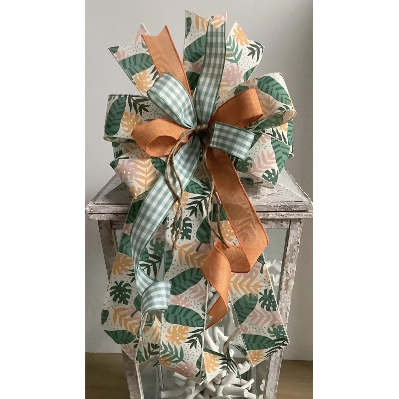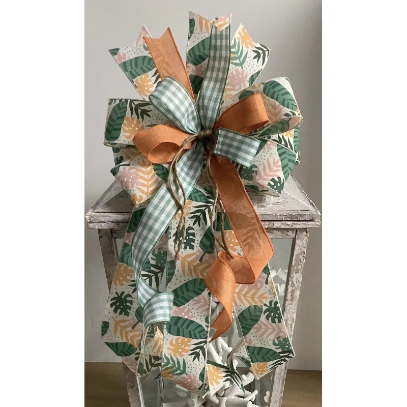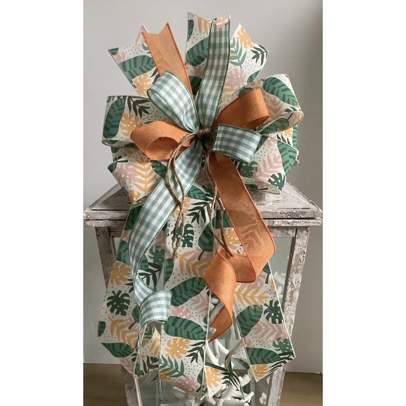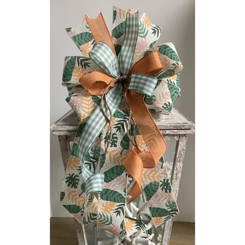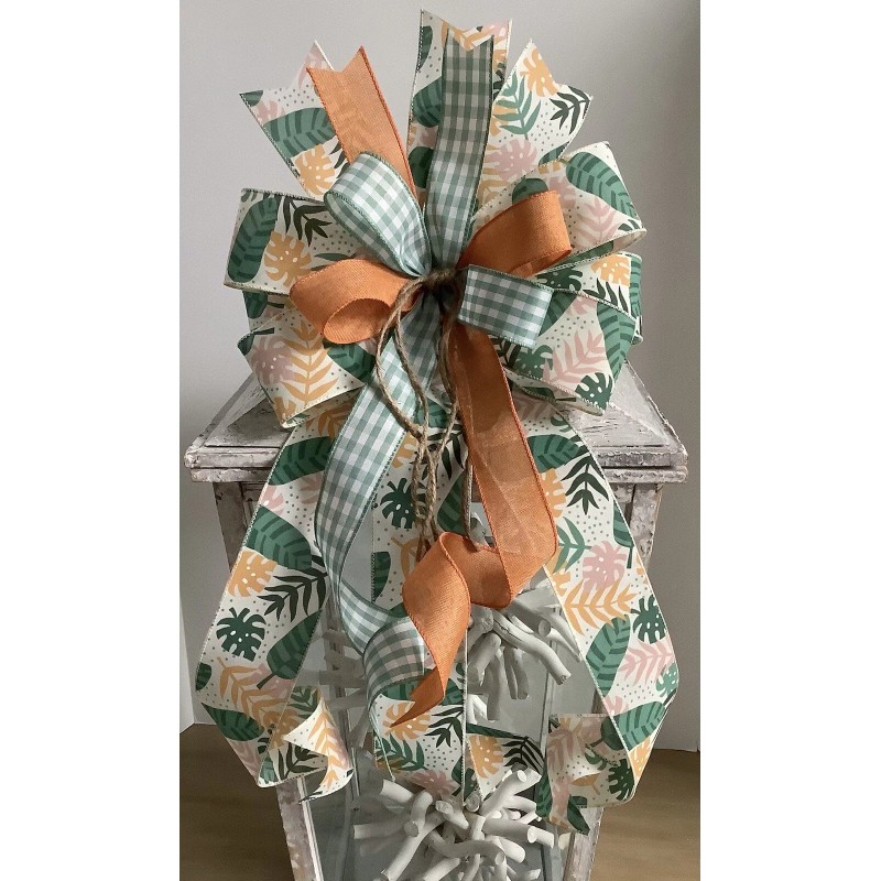 • Made with 10 loops 2.5” & 1.5' ribbon; Tropical Leaf Print Ribbons