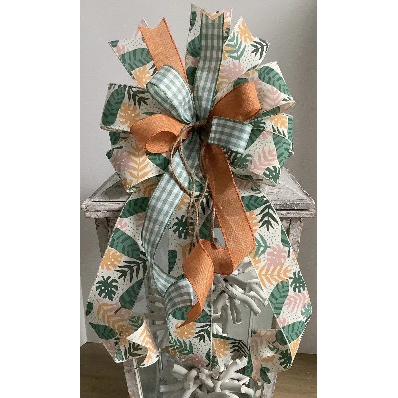 Handmade 10" Handmade Tropical Wired Wreath Bow, Nautical Leaf Print Bow