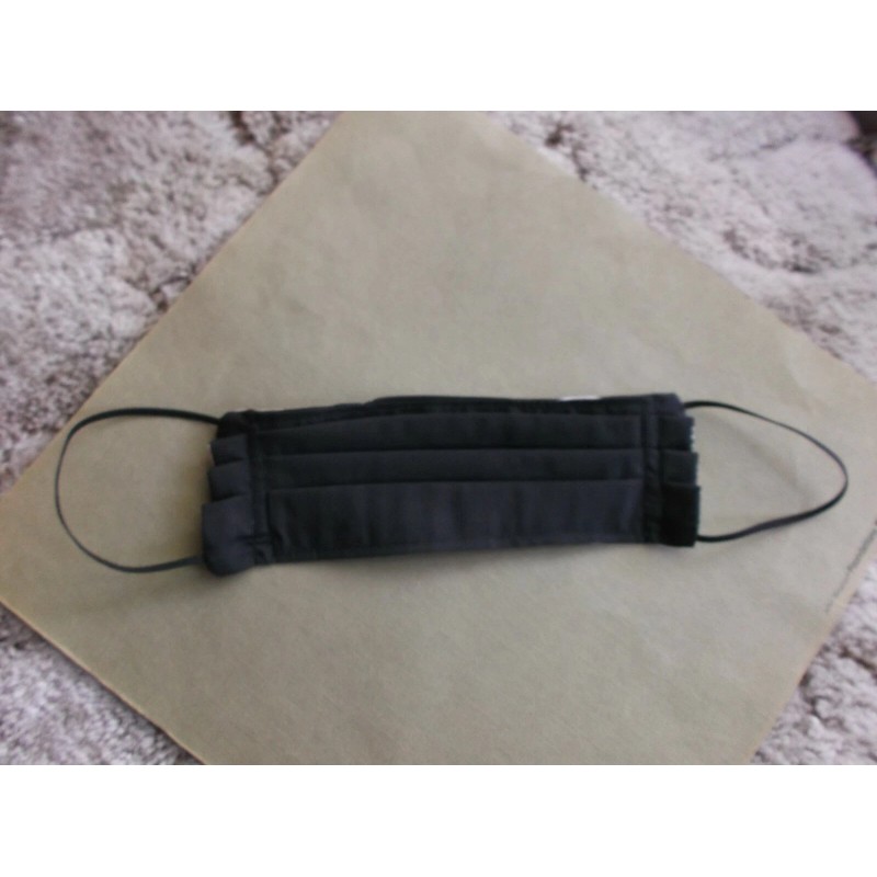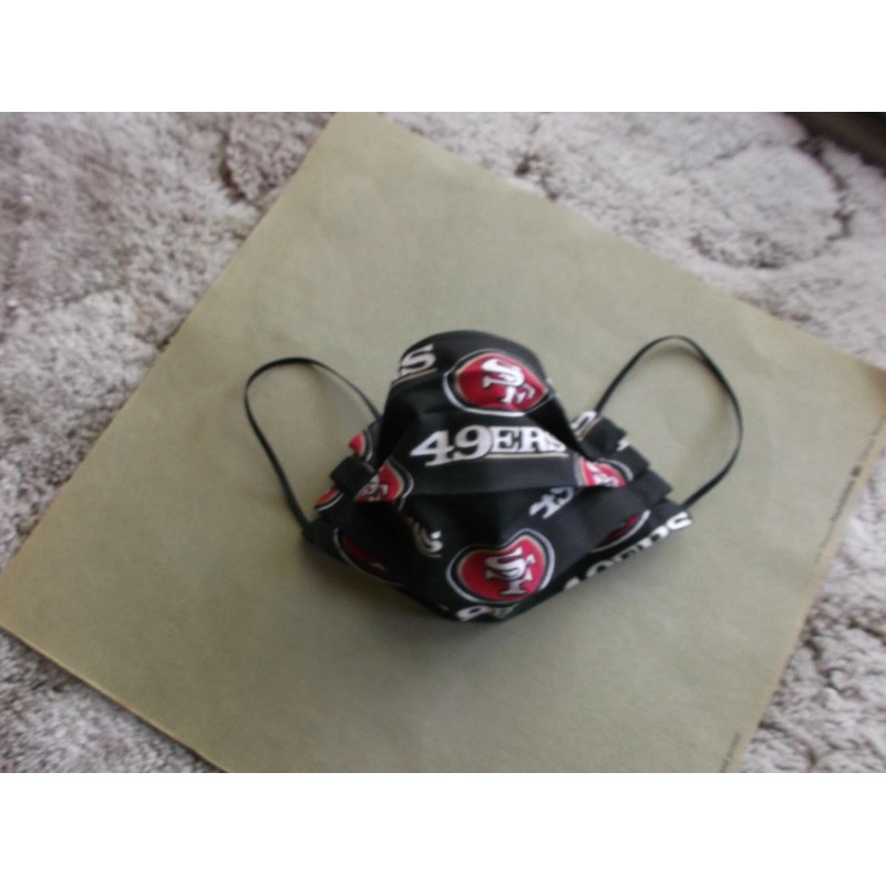 Cute 100% cotton medical mask for home use and going out in public to prevent exposure to airborne virus. This fabric is San Francisco 49ers logos on black background and solid black on the reverse side. It consists of two layers of 100% cotton fabric and 1/8 inch black elastic on the sides that goes behind the ears. It measures approximately 8 x 6 inches. Will make a great gift for those on the go. A second photo is an open view.