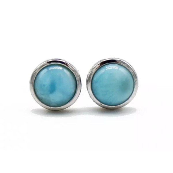 Handmade 925 Sterling Silver Natural Larimar Post/Stud Earrings - Round