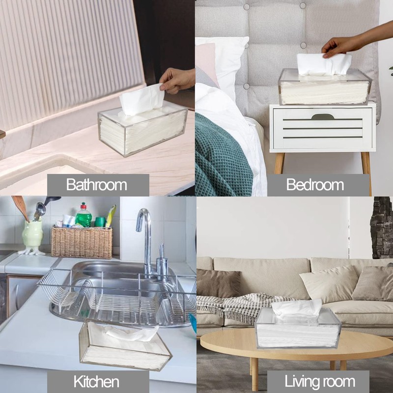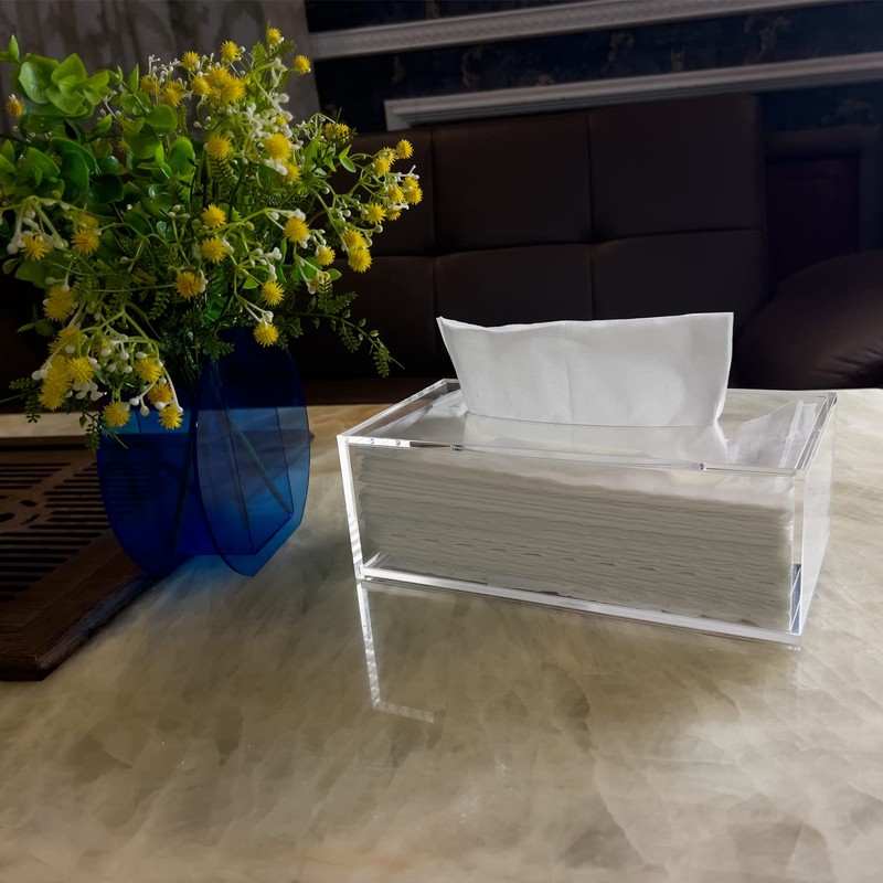 • Plexiglass material: our acrylic tissue boxes are purely handmade---The tissue holder is made of 5 mm thick, environmentally friendly acrylic material, waterproof, safe and durable.
