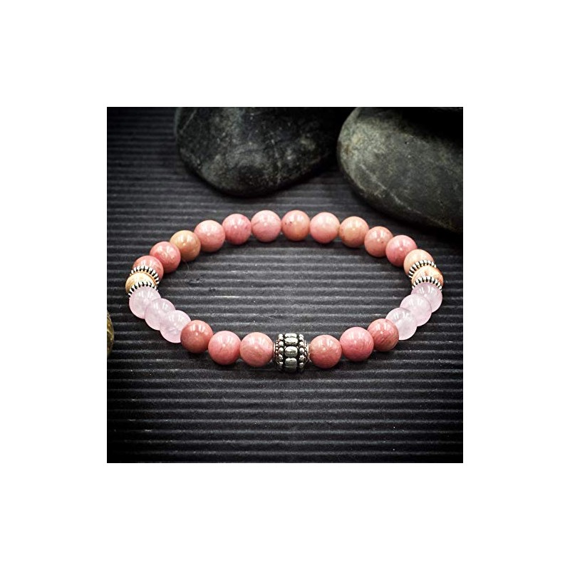 Handmade Attract Love Intention Bracelet with Rhodonite, Rose Quartz, and Rho...