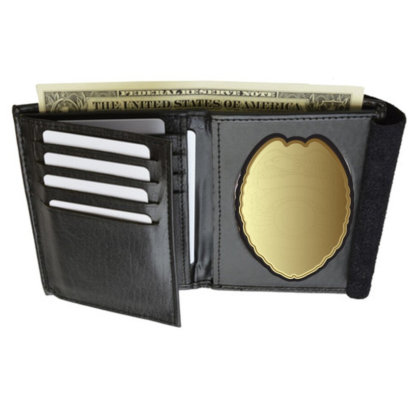Men's Leather Officer Badge Wallet Concealed Carry Weapon ID Shield Holder