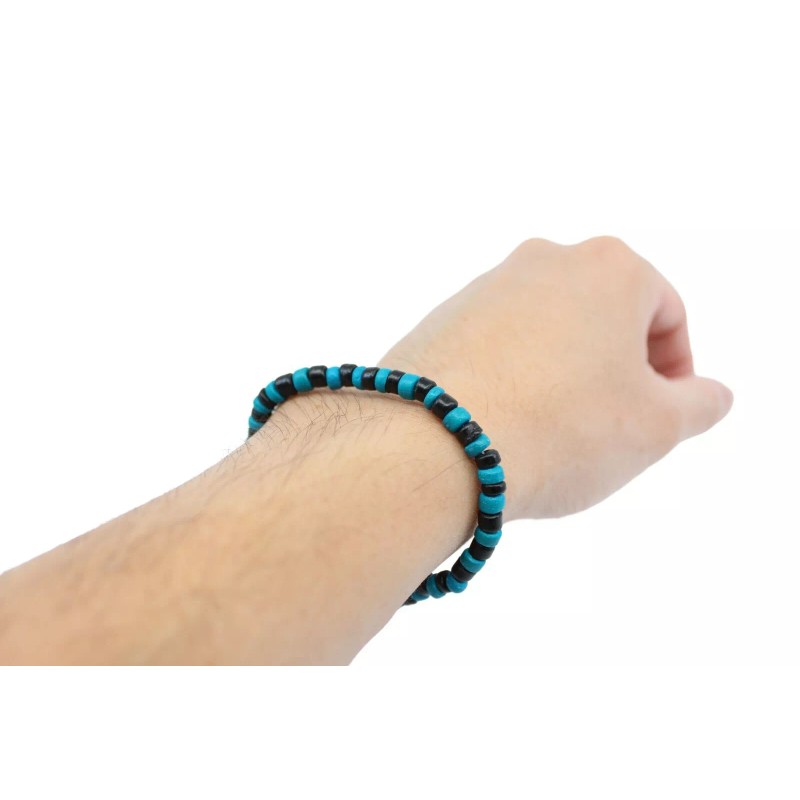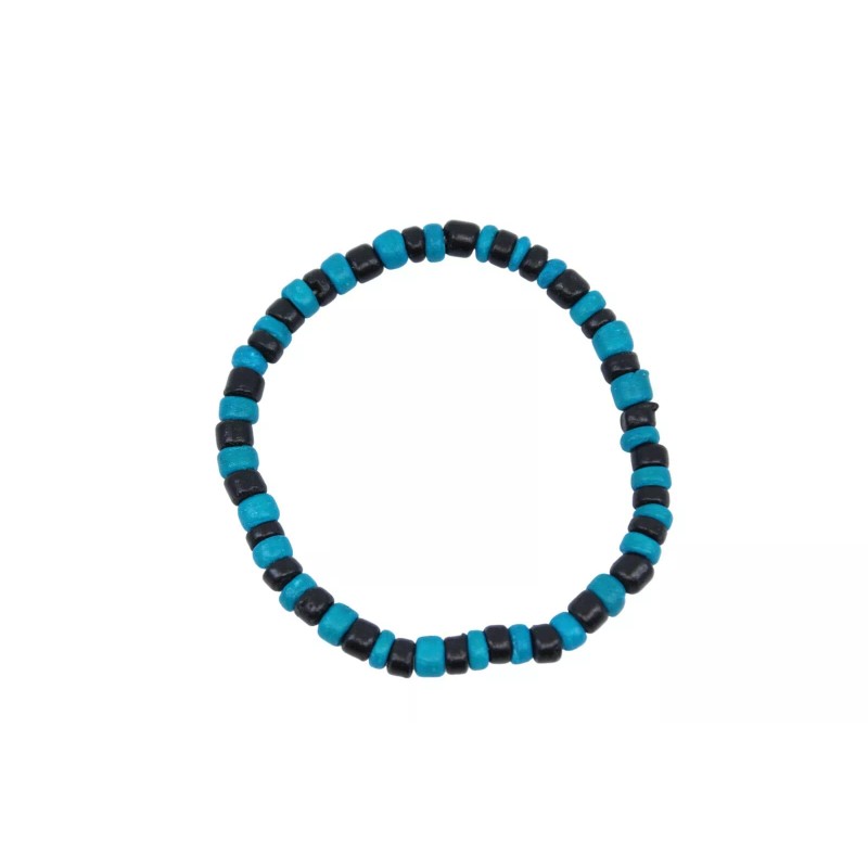 Handmade Coconut Shell Bracelet - 7", Half Blue & Black Coconut (Thin), Hawaiian Surfer