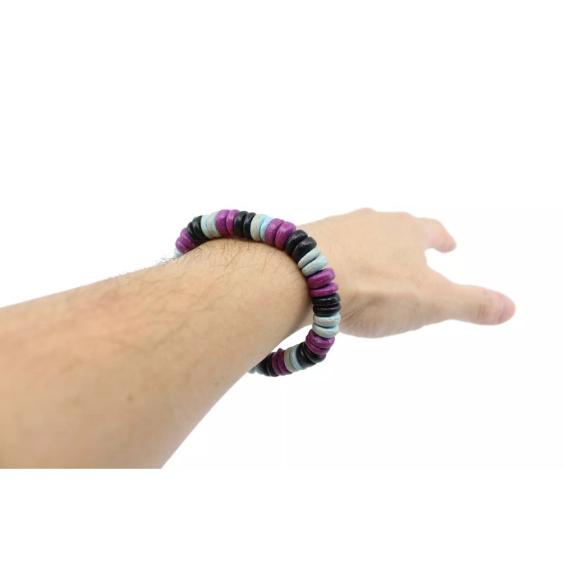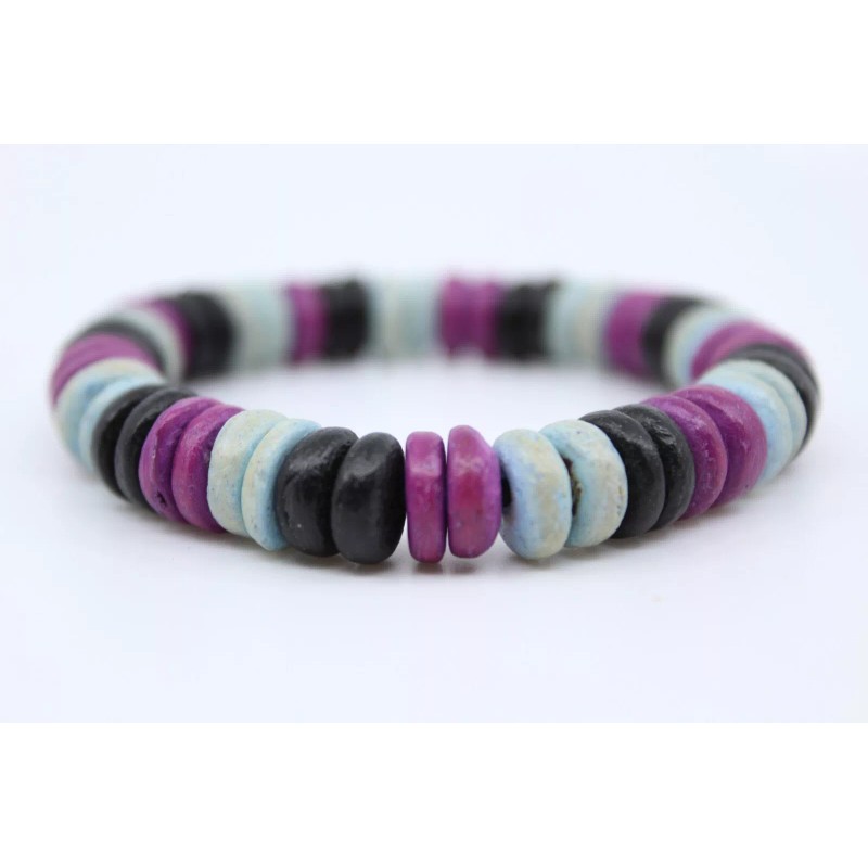 Handmade Coconut Shell Bracelet - 7", Purple, Blue, Black Coconut (Thick), Hawaiian Surf