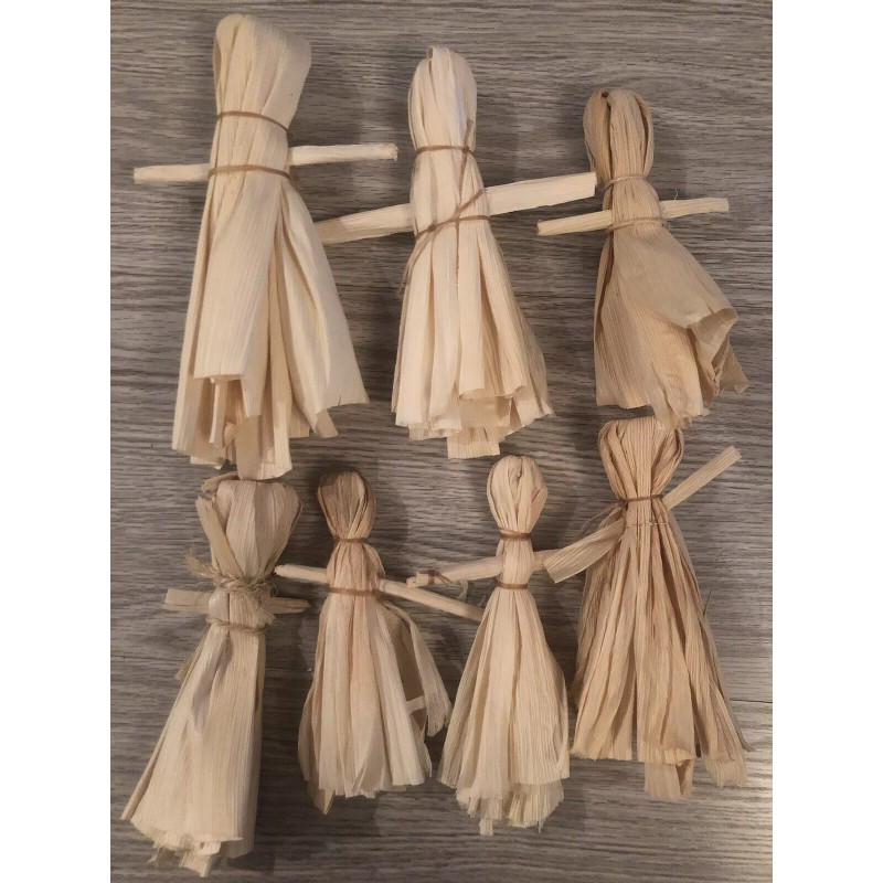 Each doll is hand crafted from natural corn husks. Sizes vary slightly in height and width, but average between 5 1/4" and 7" height.