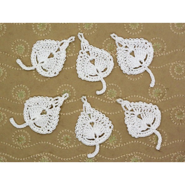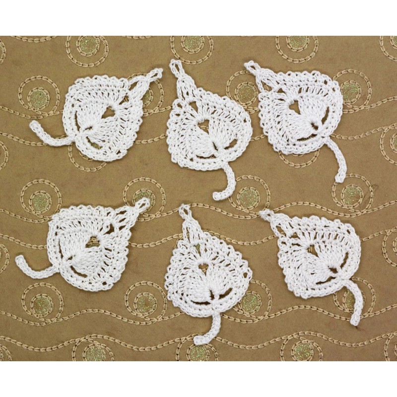 Handmade Crochet White Lacy Leaf Leaves Small Applique Embellishment Cardmaking 6 Pcs