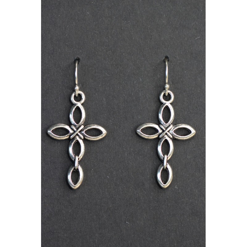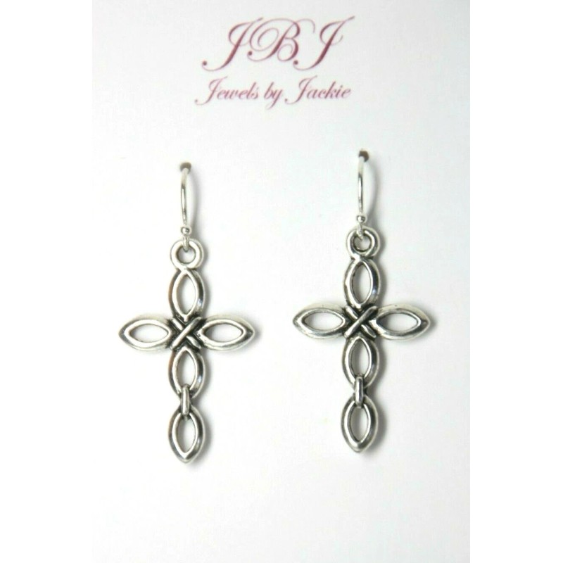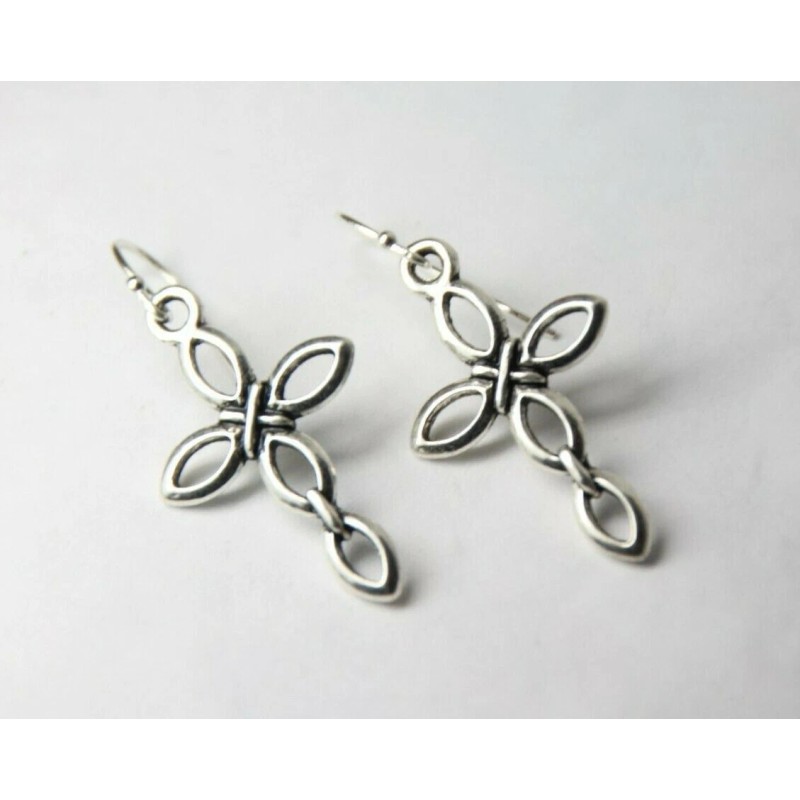 Handmade Cross Charm Earrings 925 sterling silver hooks pewter Charms 1 1/2" Religious