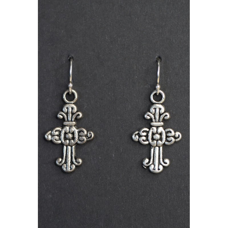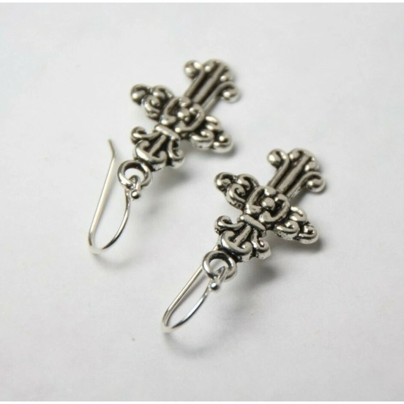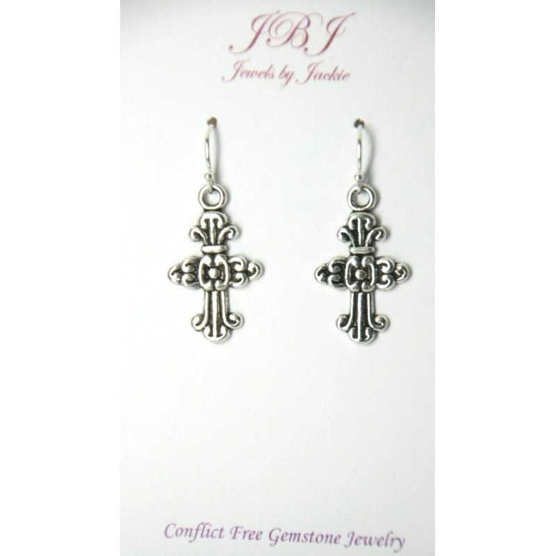 Handmade Cross Charm Earrings 925 sterling silver hooks pewter Charms 1 1/4" Religious