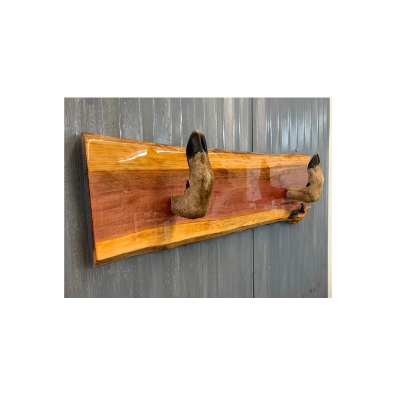 Handmade Deer Hoof Foot Feet Gun Rack Finished Live Edge Red Cedar EPOXY GLOSS