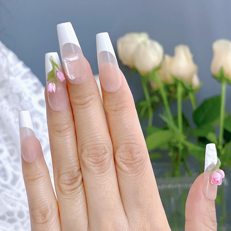 - Handmade Nails: These French tip press-on nails are meticulously crafted and quality-checked by experienced nail technicians. They undergo a complete process, including base coat, gel tips, color gel, and top coat. The colors and patterns are created with gel polish, not printed ink, ensuring a natural, beautiful, and durable look with salon-grade quality.
