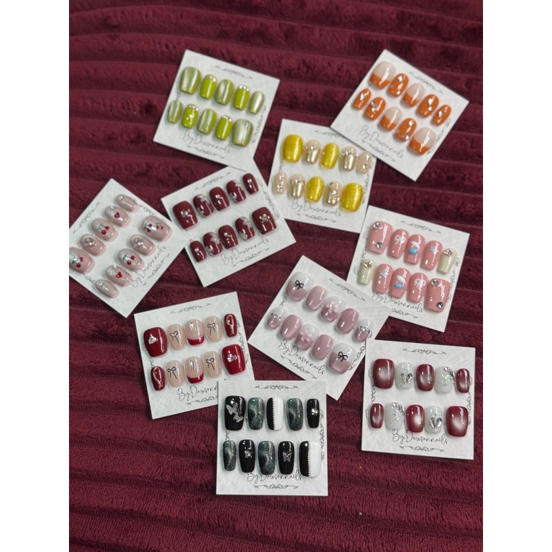 Handmade GRAB BAGS 4 pairs RANDOM DESIGN HANDMADE NAILS 3D collection sz Medium Short LOT
