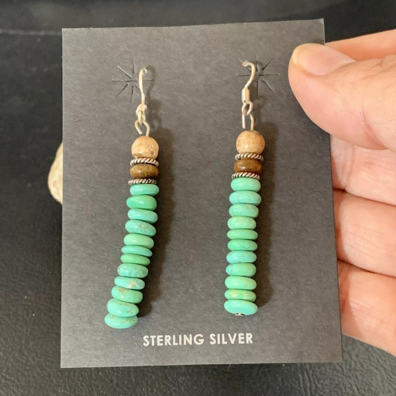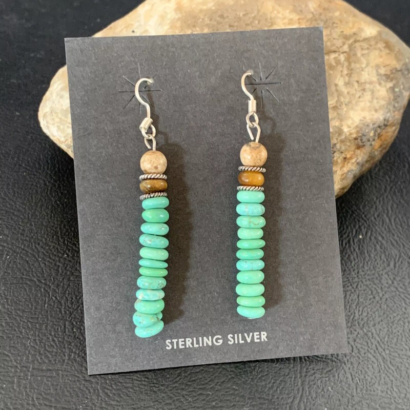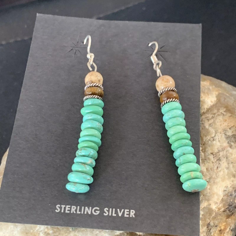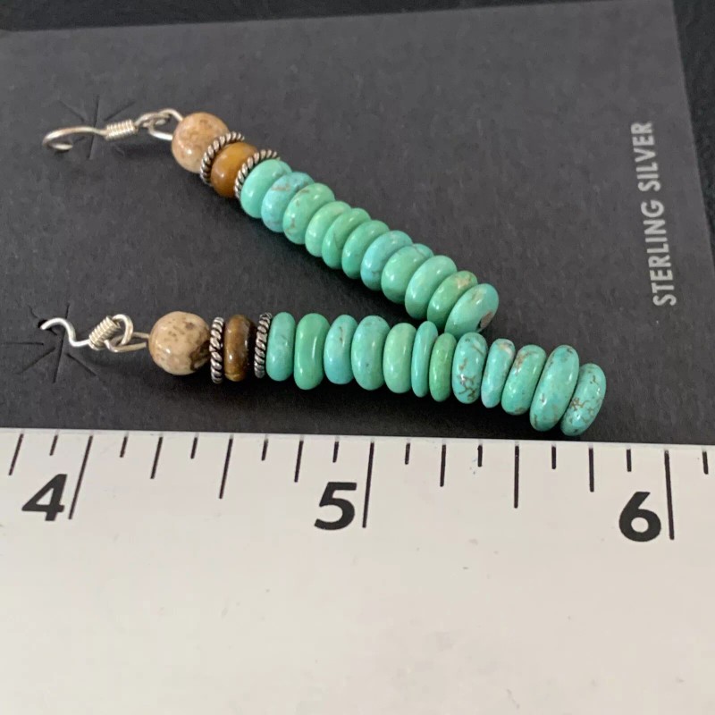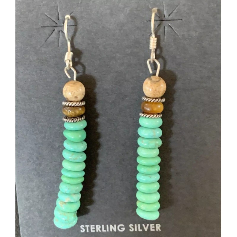 handmade Green Turquoise & Picture Jasper Bead Navajo Sterling Silver Earrings 04080