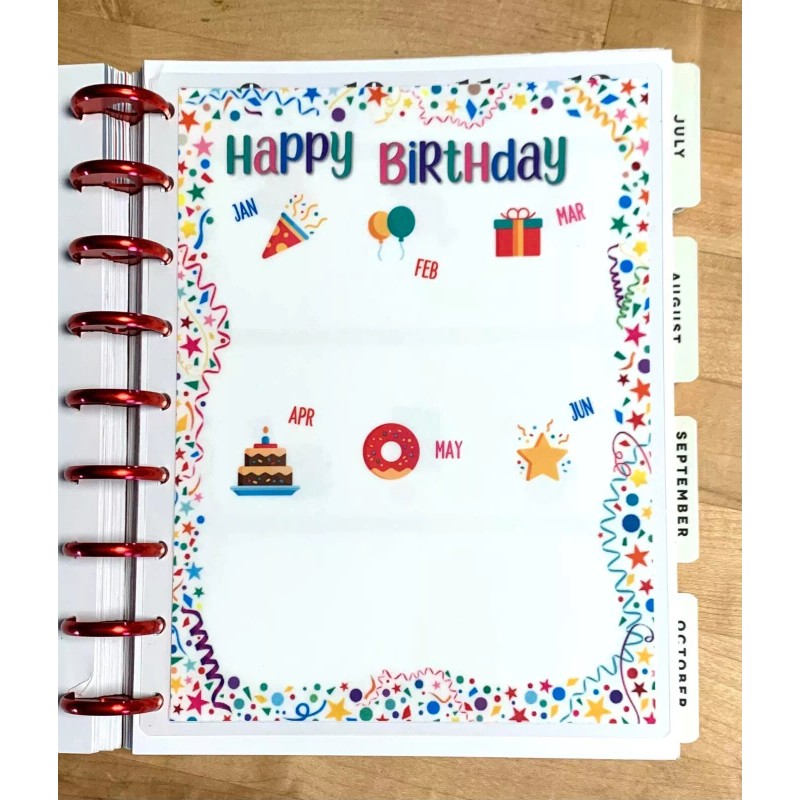 Handmade Happy Birthday Tracker Dashboard Insert 4 use with Classic Happy Planner