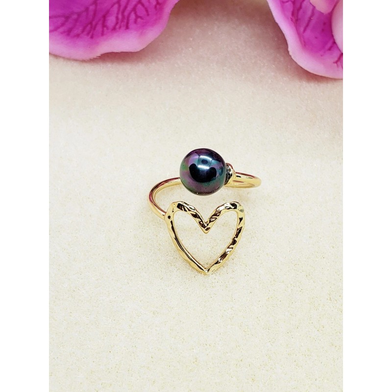 Handmade Heart Black Pearl ring, Adjustable Ring
