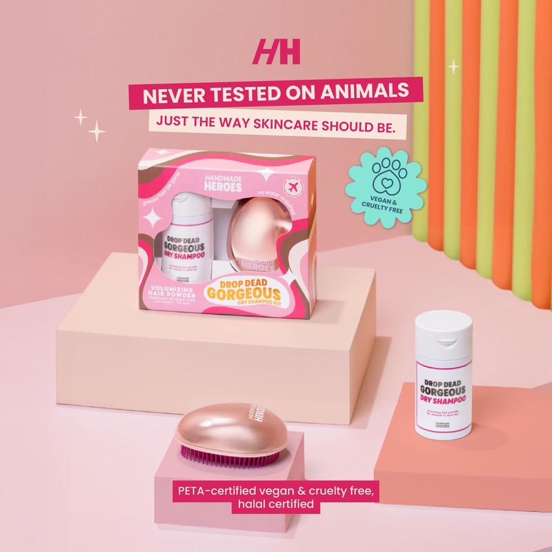 Handmade Heroes Non Aerosol Dry Shampoo Volume Powder 100% Natural & Vegan Volumizing Hair Powder For Light Hair and Blonde (Dry Shampoo and Brush Kit)