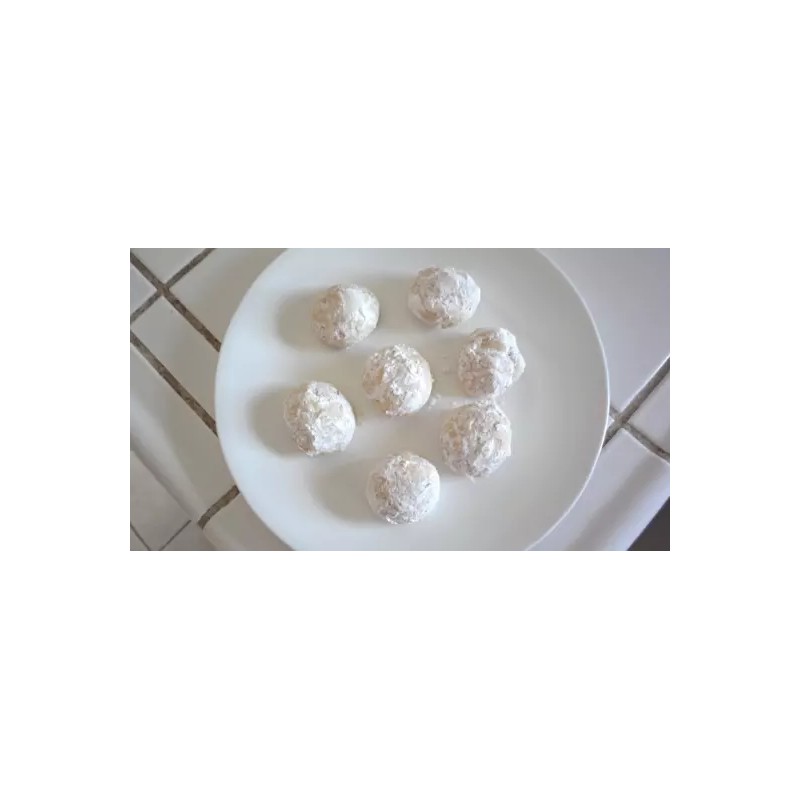 Delicious homemade Russian tea cakes that measure 1.5" to 2" in diameter. They are like shortbread cookies which means it has more butter and less sugar than the standard cookie. If you want pecans to be added, just add a note let us know. Order is for 12.