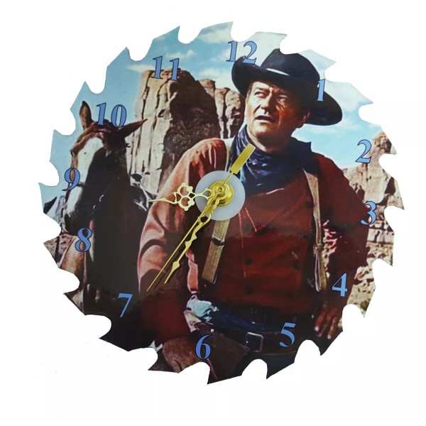 Handmade John Wayne 7 1/4" Saw Blade Clock Collector's Item