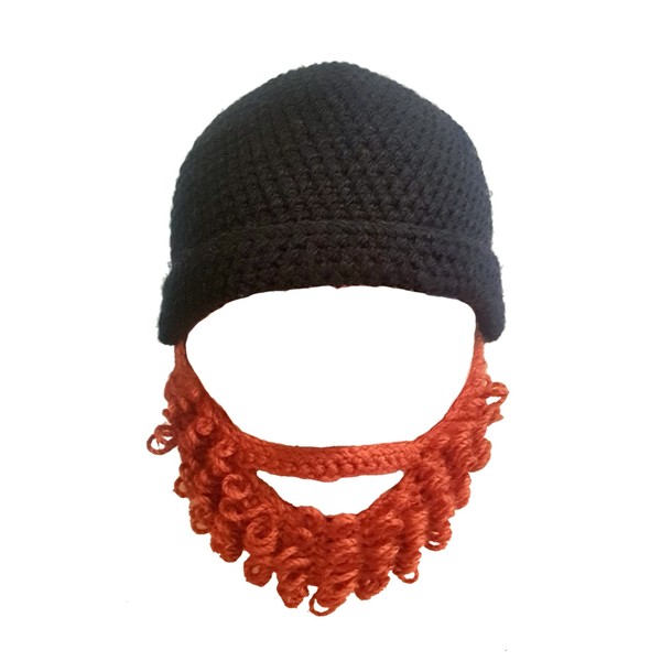 Handmade Knitted Hat Beanie with Removable Red Beard, Black & Red, One Size