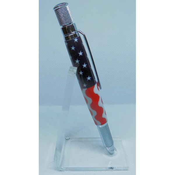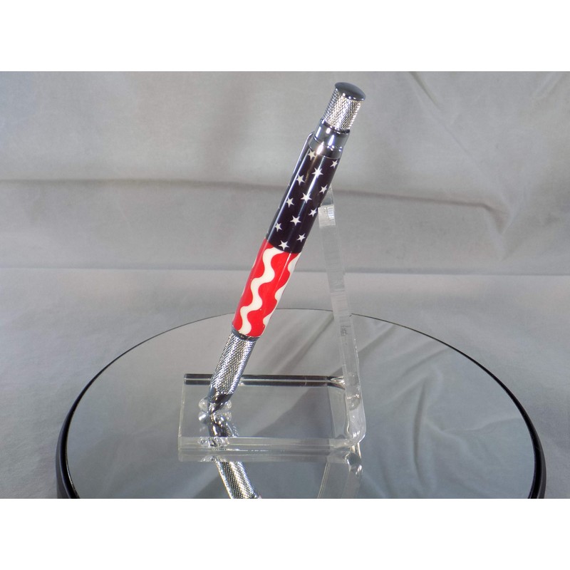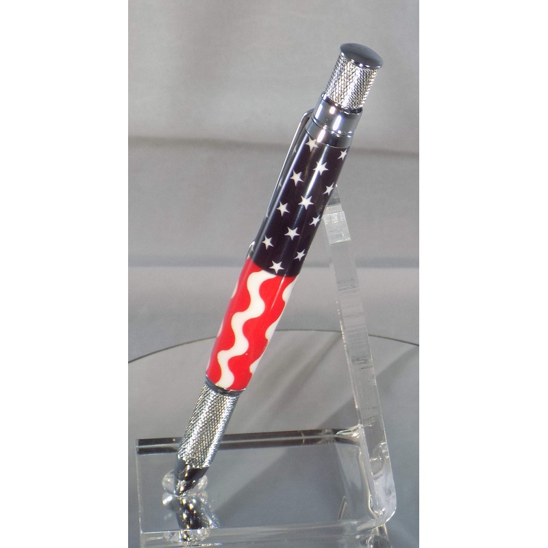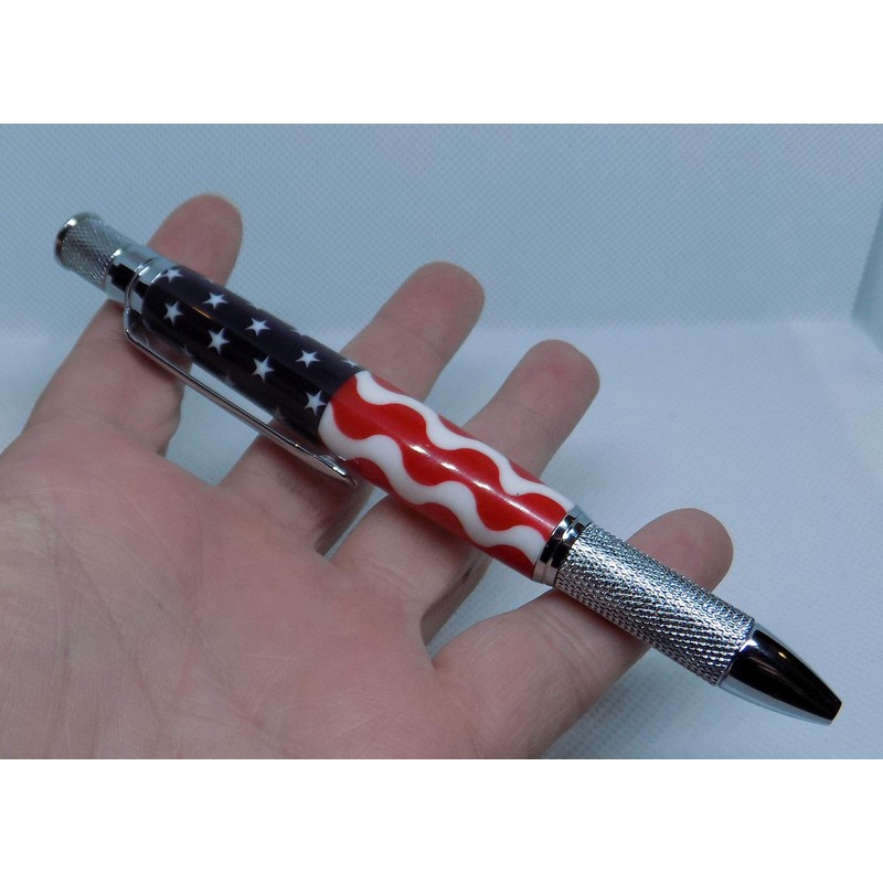 Handmade Knurl GT Pen - Patriotic Stylized American Flag - Red, White & Blue - Chrome Hardware