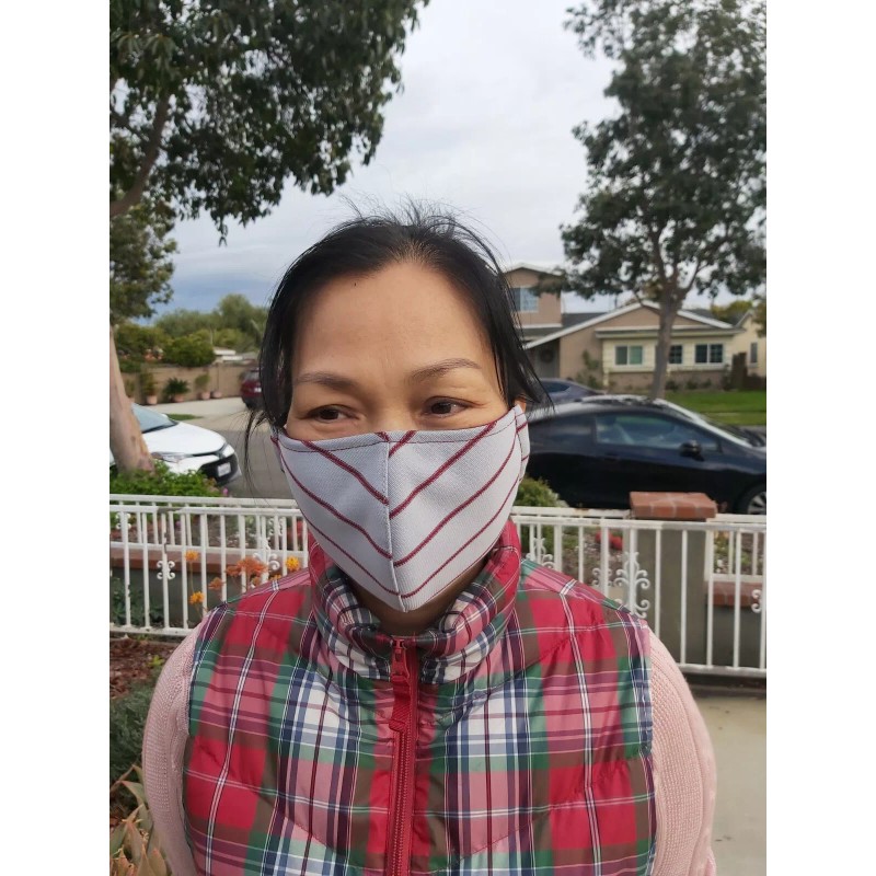 Handmade Pack of 3 reusable washable face mask with 2 sides gray-red stripes ...