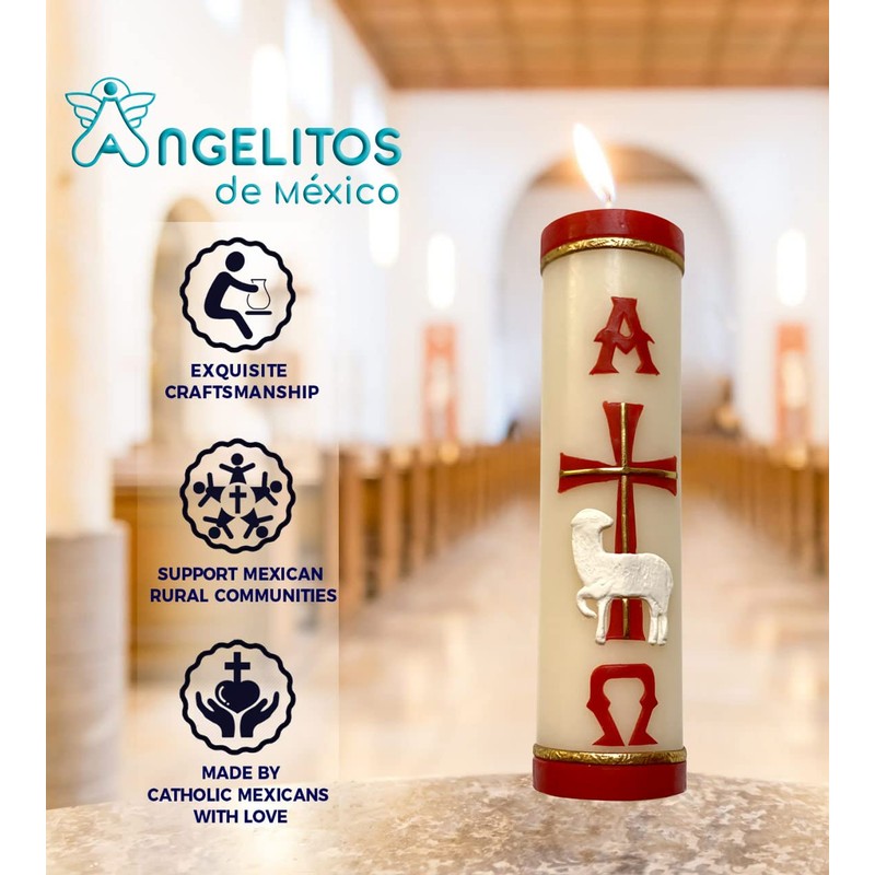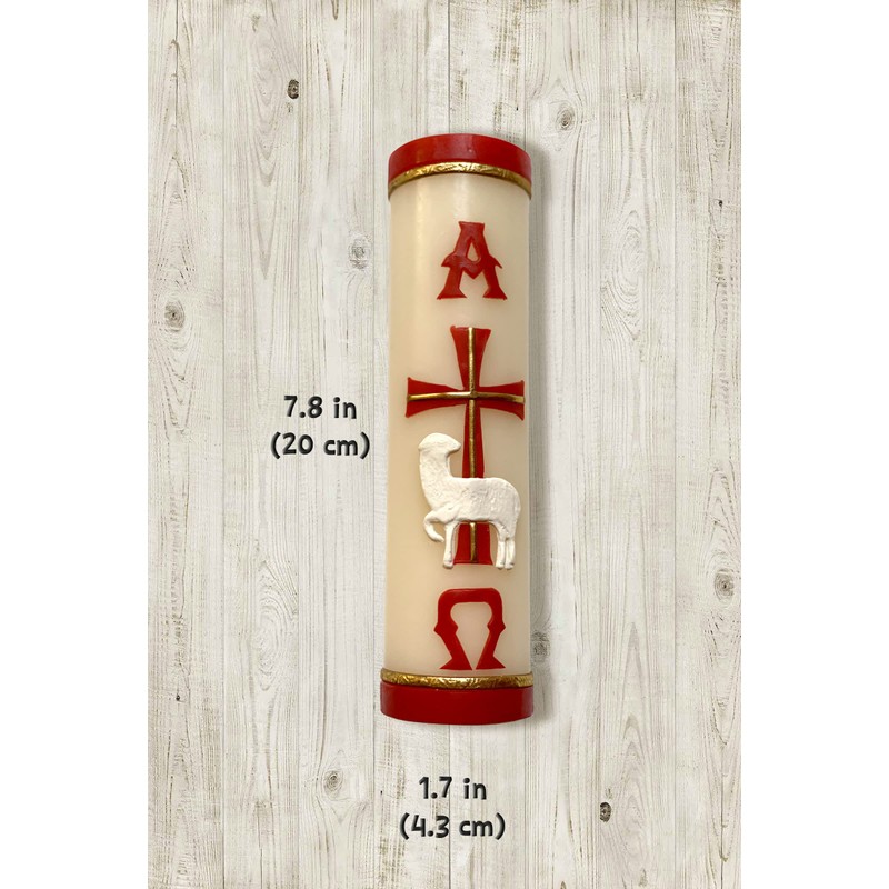 Handmade Paschal Red Candle Alpha Omega Cross Sheep