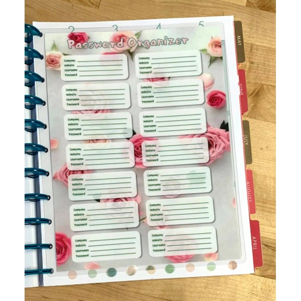 Handmade Password Organizer Two Sided Dashboard for use with the BIG Happy Planner