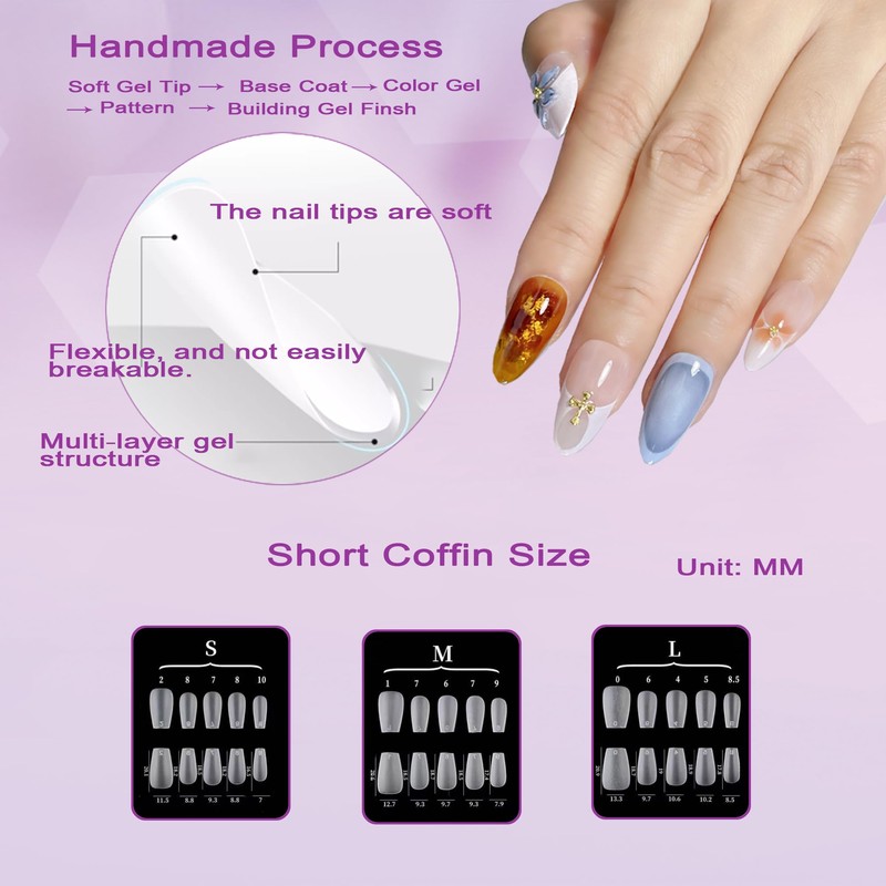 • Superior Quality: Our press-on nails are made from high-quality natural materials that are safe for your body and nails. The soft nail tips provide a comfortable and pleasant experience.