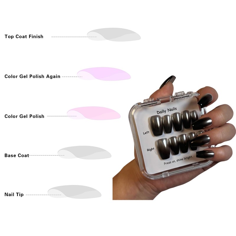 Mirror-Like Shine: The magic mirror finish gives the nails a high-gloss, reflective shine for an ultra-sleek and polished look.