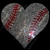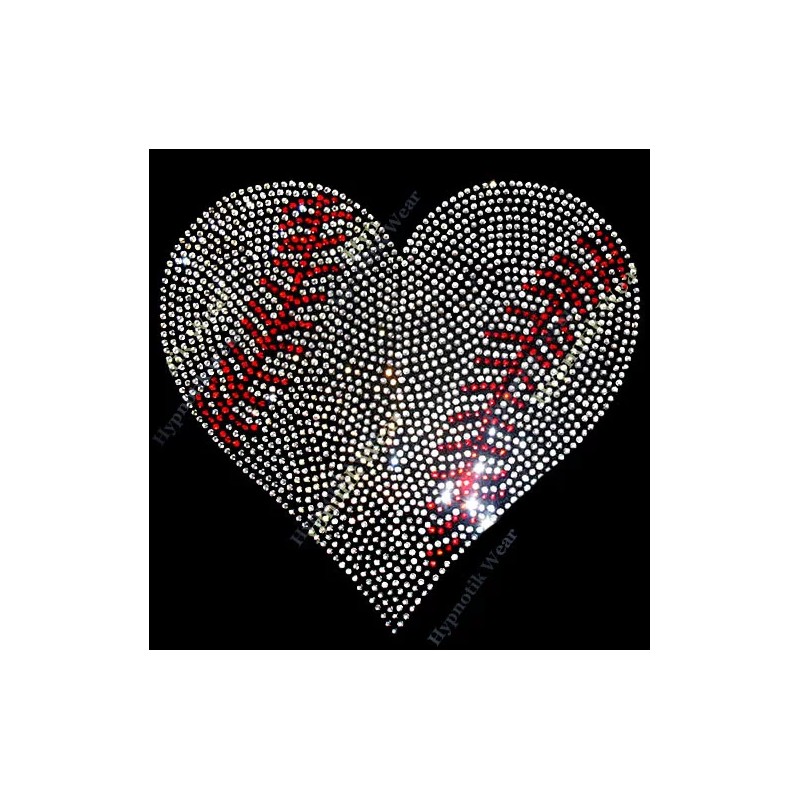 "Handmade" Rhinestone Transfer " Crystal Baseball Heart " Hotfix , Iron On, Bling