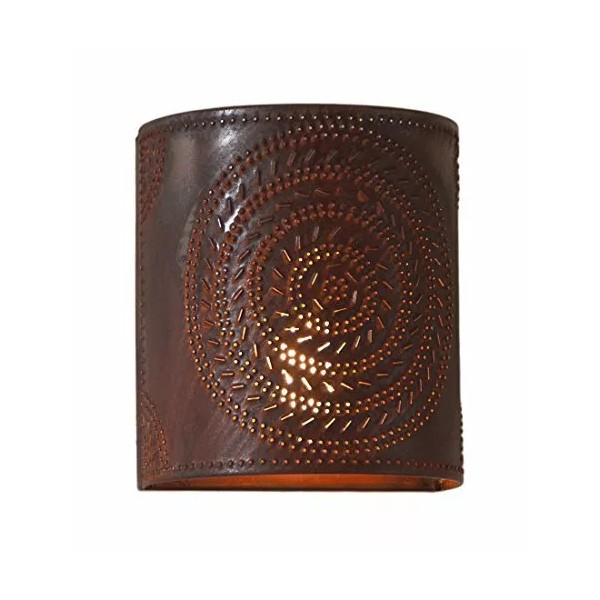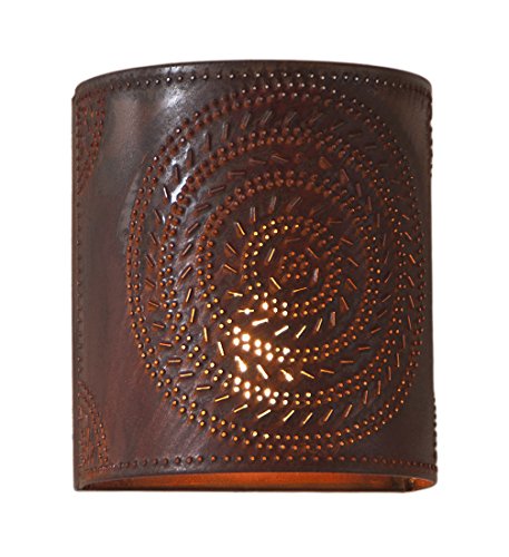 Handmade Rustic Single Light Punched Tin Chisel Patterned Wall Sconce in Rust...