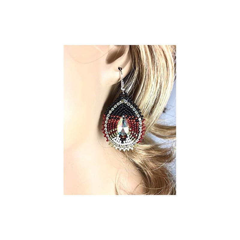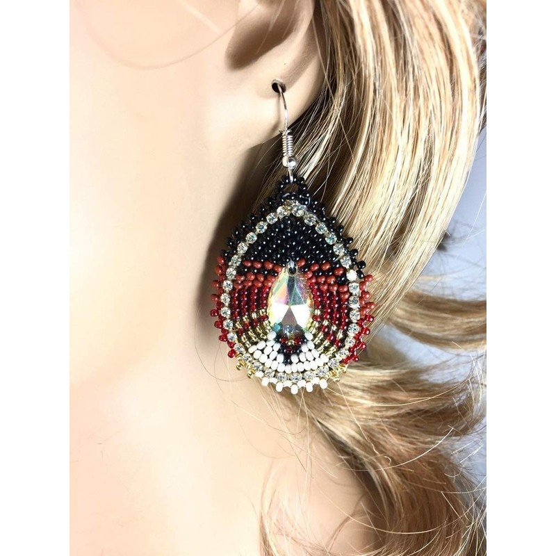 Handmade Seed Beaded Teardrop Hook Earrings (Brown)