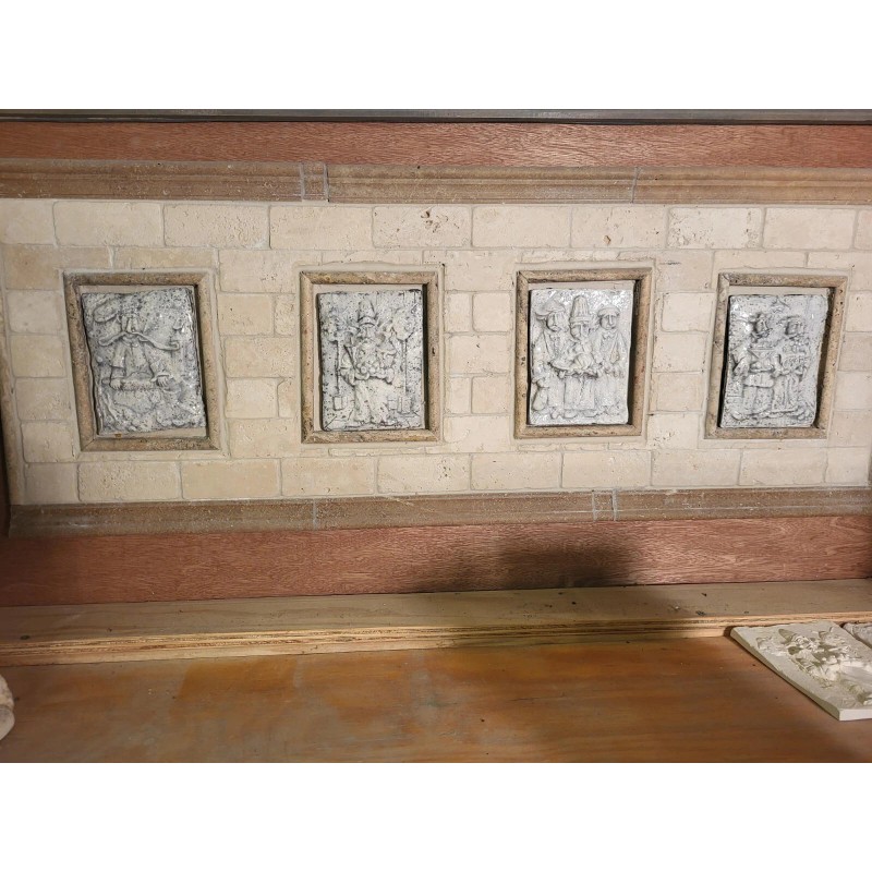 Handmade set of 4, Travertin looking hand made ceramic fat wimsical chef kitchen plaques