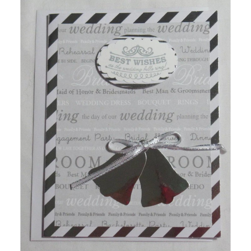 "Handmade" Stampin Up! Handmade card White Silver Wedding Best Wishes Bells Foil w/envelope