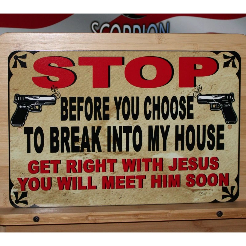 Handmade STOP Before You Choose to Break Into My House Aluminum Sign 8x 12 in