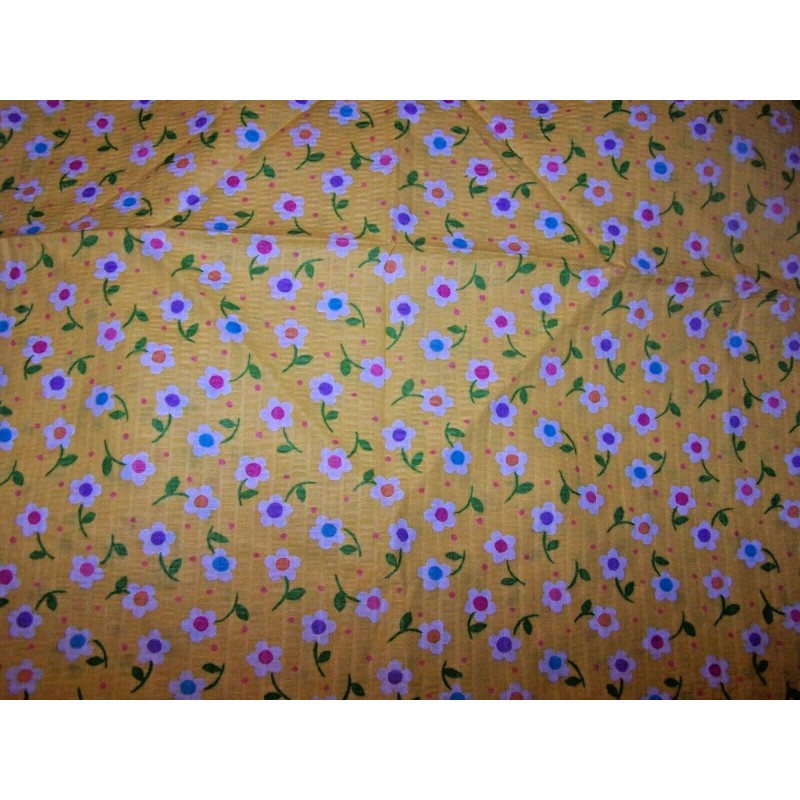 Sweet white flowers with colored centers (pink, blue, purple, or gold) on a bright yellow background. So cute!