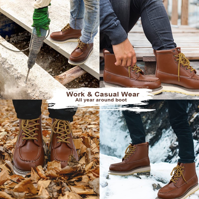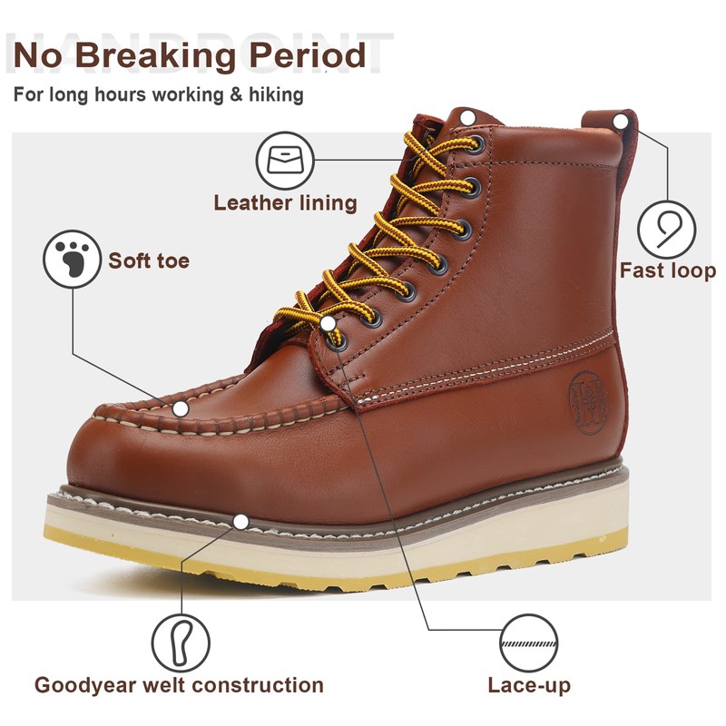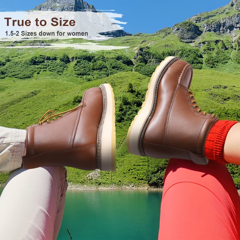 - >Durable Construction: The Goodyear welt construction of the boots is to provide durability for the industry, the sole and upper are strong and not easy to damage, they have the strongest construction of the shoe, we specially let our workers colleagues before making large shipments After wearing it for a while, and fund that these boots are light and fit very well. and the lace-up design keeps the shoe on the foot. and provides excellent stability for better posture and long-term wear.