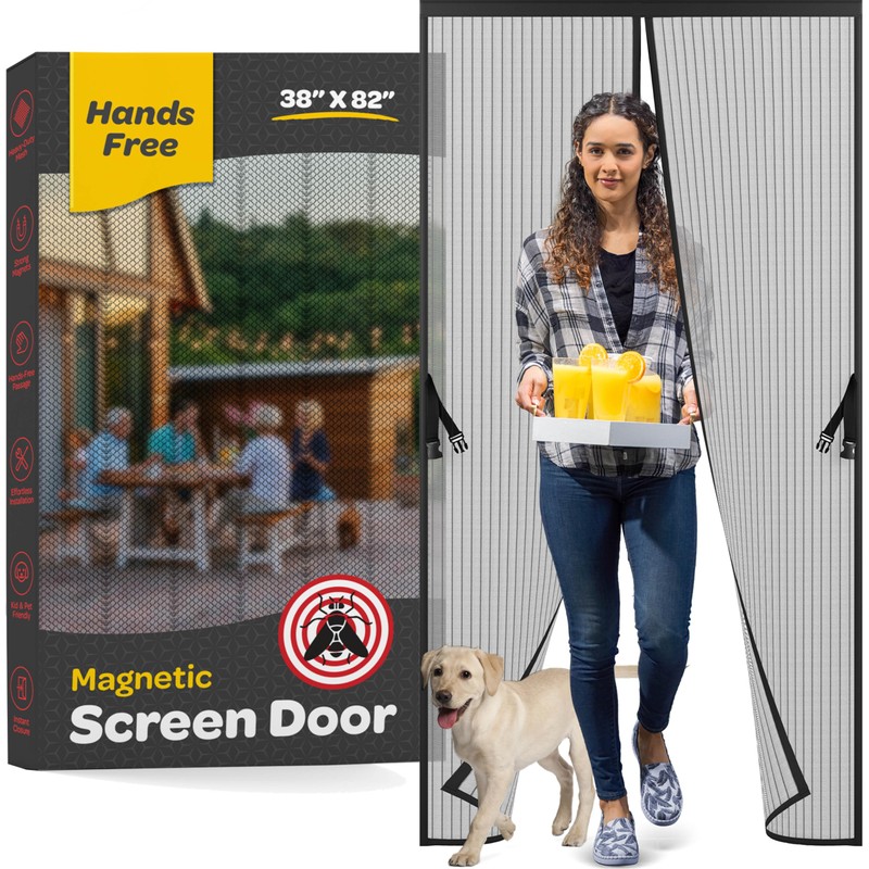 - INSECT PROTECTION-A protective door net screen with magnets, crafted of fine mesh that will keep flies and mosquitoes out, while letting fresh air in. Superstrong magnets down the entire length keep the screen door firmly shut.