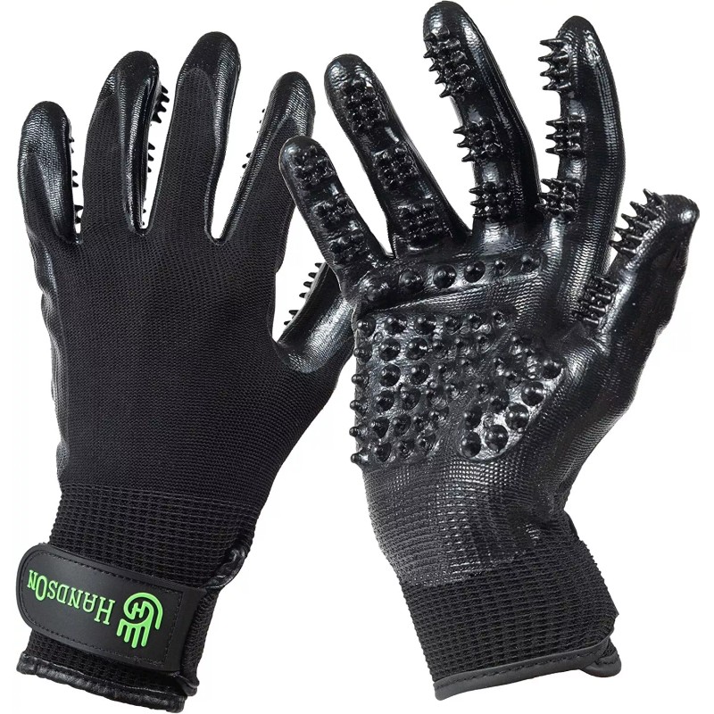 HandsOn Gloves Pet Grooming Gloves, Black - Medium