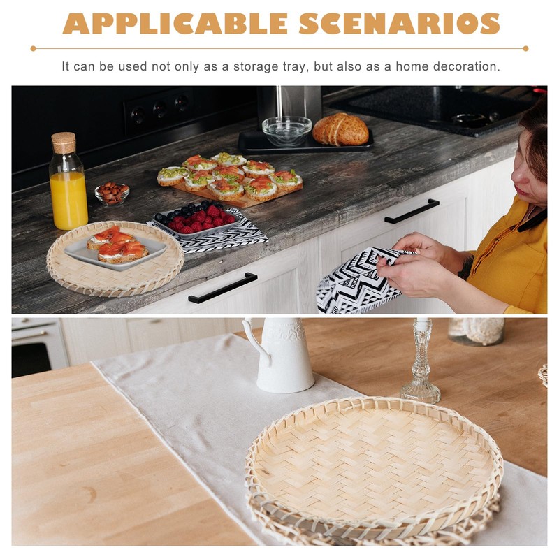 Food Storage basket Fine workmanship, beautiful and practical, can be used indoors and outdoors.snack container The bamboo woven basket is precise and delicate, stable and beautiful.countertop basket Tasteless, you can put fruits, bread and vegetables.picnic basket The design is exquisite and special, it can be used not only as a storage tray, but also as a home decoration