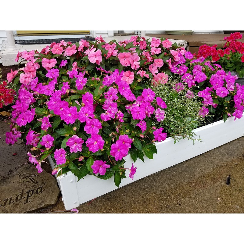 The Handy Bed 2x3 (Seeding Square not included) has been designed for the Square Foot Gardener with inside dimensions of exactly 24 in. x 36 in. inside (outside is 26 in. x 38 in.) It is constructed of durable UV protected PVC (Vinyl) that will NEVER ROT like wood or lose its white color. It offers a Lifetime Warranty against peeling, flaking, blistering, corroding, rotting, fading and manufacturing defects. Its simple design allows almost anyone the ability to assemble in minutes with only a cordless drill with #2 Phillips bit. Stainless steel screws add strength where it counts allowing the Handy Bed to be relocated year after year after year if desired. Something most other beds cannot. Its 6" depth is adequate for growing most veggies and flowers. The bed can be placed at any level location where adequate sunlight for desired plants is available. The 2'x3'x6" Handy Bed holds approximately (4) 40lb bags of topsoil or 3 cu. ft. The PVC is self cleansing from the rain or simply use a garden hose to spray off excess dirt. For stubborn stains, use soap and water. This bed is stack-able with another Handy Bed of the same size by aligning the tongue and groove joints allowing the next Handy Bed to sit right on top of the lower unit for more soil depth and/or tiering. The elements associated with weather, soil and water make Vinyl (PVC) the right choice for your raised beds to endure many years of successful growing.