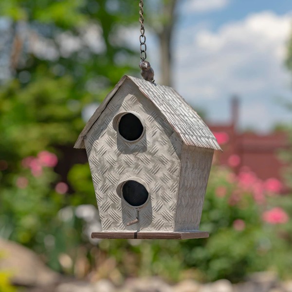 - If you want only the best for your birds, our hanging painted antique style galvanized birdhouses are made for you. Each piece has its own architectural concept, making them fun, realistic and unique for you (and the bird). Made from metal, these houses are structurally sound and weather-resistant. An excellent seller for obvious reasons...get these in your yard or hanging near your patio before they're gone!