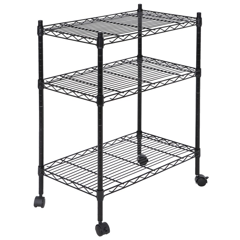 HANGKAI Heavy Duty 3-Shelf Shelving with Wheels, Adjustable Rack Unit, Steel Organizer Wire Rack, 24Lx13.9Wx31.2H, Black