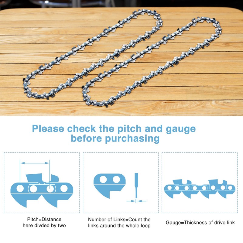 - Easy and quick to replace, easy for beginners to use: Simply remove the side cover of the chainsaw, remove the old saw chain, install our new saw chain, adjust the tightness of the saw chain and install the side cover. Finished reminder, very easy and convenient: when you install the saw chain, you will see clearly and identify the correct direction of the saw chain teeth.
