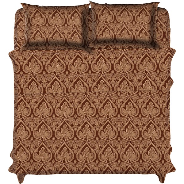 Hannah Linen Bed Sheets Set (Queen, Paisley Brown)