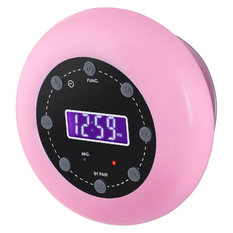 HANNLOMAX HX-159CR Shower Clock Radio, PLL FM Radio, Bluetooth with Hand-Free Function, LCD Display, Waterproof (IPX4), Built-in Li-ion Rechargeable Battery, Unique Suction Cup Design. (Pink)