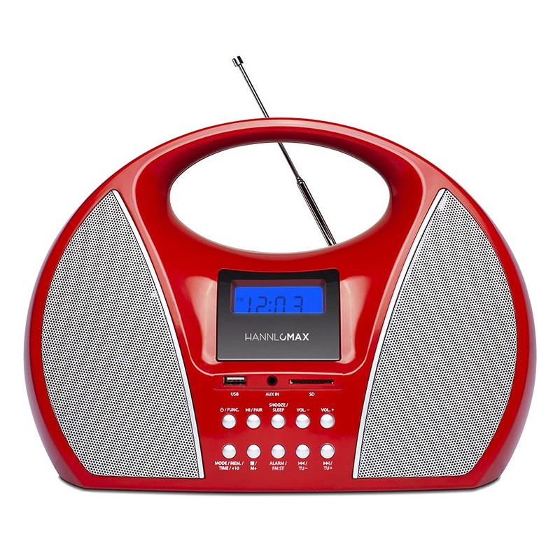 HANNLOMAX HX-510R Portable AM/FM Radio with USB/SD Port for MP3 Playback, Bluetooth and Aux-in (Red)