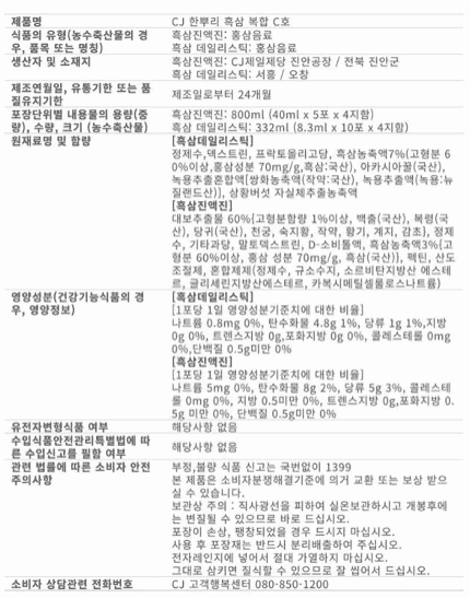 - 원(재)료명 및 함량: 상품상세설명 참조